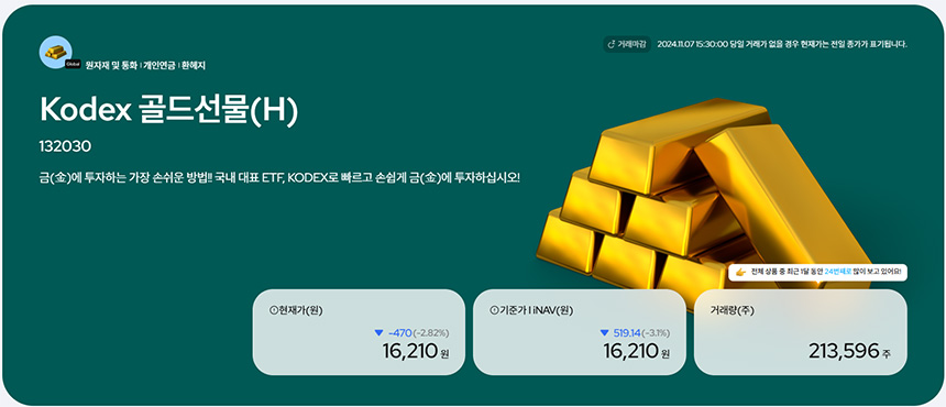 - 단점: 실물 금 소유권 없음, 운용 수수료 발생